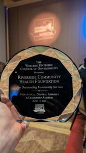 Riverside, Calif., June 23, 2025 — Riverside Community Health Foundation (RCHF) received the prestigious Community Service Award at the 34th General Assembly and Leadership Address hosted by the Western Riverside Council of Governments on June 12, 2025, at the Pechenga Resort Casino in Temecula.